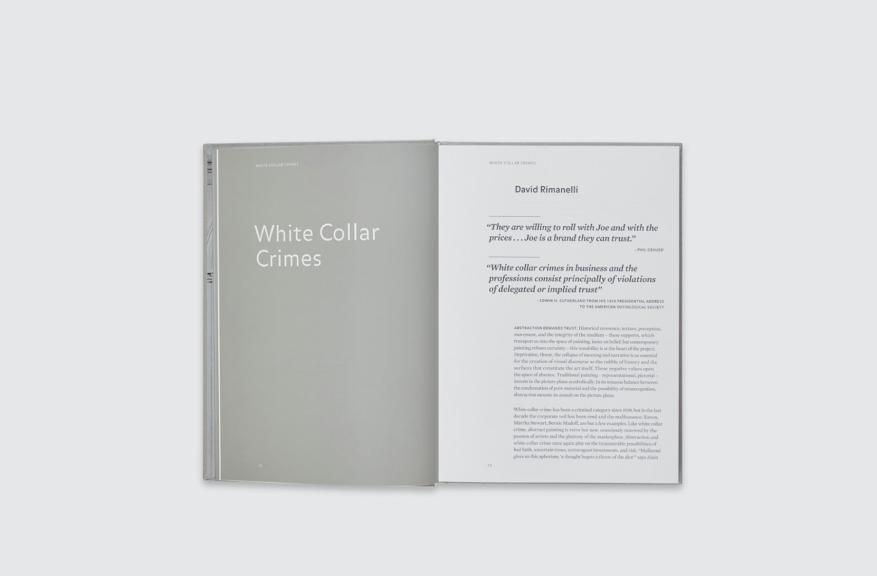 Catalogue accompanying the exhibition, "White Collar Crimes", on view at Acquavella Galleries from February 21 - March 27, 2013. Includes texts by Vito Schnabel, Agnes Gund, and David Rimanelli in addition to exhibition installation shots and work by Rita Ackermann, Tauba Auerbach, Stefan Bondell, Joe Bradley, The Bruce High Quality Foundation, Dan Colen, Rashid Johnson, and Josh Smith.